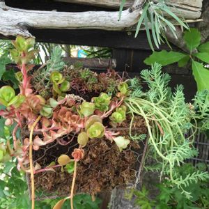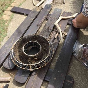 寄せ植え⑵流木をビスで留めてもらって器を作ってもらいルビネを垂らして!