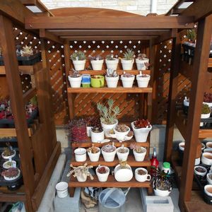 日曜大工でつくった屋根付き多肉棚です!(^^)!