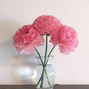 ラナンキュラス小春びよりさん かなり咲かせてしまったけど、やっとの思いでカット✂ 花瓶に活けても美しい🥰🥰🥰