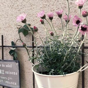 セリアでブリキポット買ったのでローダンセマム入れました もう少しジャンク感が欲しいところだけど100円と思えば十分な可愛さ😆