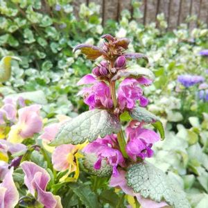 今日は8℃~16℃☁️☔️ 花壇のラミウム・スターリングシルバー、開花しました✨ 葉っぱの色が気に入り育てていたのですが、こんなにきれいな色の花を咲かせるなんて🎶 他の方のpicで種類が判明しました🍀