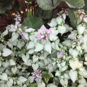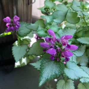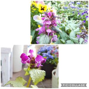 ラミウム 上、シルバーリーフ(花壇) 下、ホワイトリーフ(鉢) どちらも似たような色の花でした💜 花を見て、ラミウム、さらに好きになりました😊 寄せ植えなどで生かせてあげれなくて残念です。