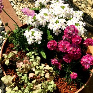 先日作った寄せ植えに、 白いジュリアンをプラス😉 どうだろ?🤔