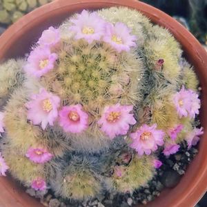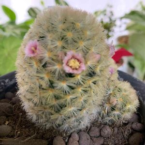 お天気が良いので、少し水をあげました。 ピンクの花が🌸咲いています。 マミラリア カルメナエ。