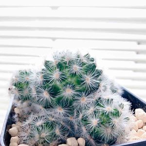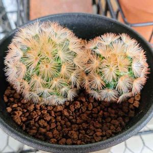 サボテン マミラリア カルメナエ 連日の暑さで鉢もカラカラなので昨日の夕方にたっぷり水遣りしました。今日は日陰で静養です。🙂
