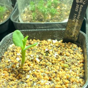 にょ〜 みしょり隊ですにょ〜 ユーフォルビア ギラウミニアナ 自家受粉の種 2つ蒔いて ひとつだけ発芽 こりゃ緊張しますにょ〜