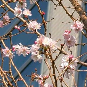 今日の散歩🚶 木場のショッピングモール🛒 コヒガンザクラ❓️が咲いていました🌸 近づけなかったのでアップはなしです💦