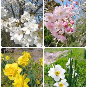 3/27㈭① 今日のお花がサクラなんて誕生日を祝ってもらってるようで嬉しいですね、同じ日生まれのミンちゃん、さいたまさん🌸🌸🌸🌸🌸☺️ ①神代植物公園の桜園地の丘の上の大寒桜と、違う木の大寒桜で遊ぶヒヨドリさん ②神代植物公園の寒緋桜は松陰神社とは違って淡いピンク色🩷巨木に圧倒されました!! ③-1寒咲大島…初めて見ました! ③-2子福桜…まだ咲いてました! ③-3東海桜または啓翁桜 ④近所の公園の河津桜葉は出てきてますがまだ頑張ってます ④-2え?オカメザクラ?今満開です。建物の北側だからかしら?⬅コヒガンザクラでした😂 ⑤散歩中に見つけた桜。名札を見たら何と神代曙でした!神代植物公園に行った日23日にはまだ神代ではさいてませんでしたが、ここに来ればまた見られるのねーと嬉しい発見でした🌸🌸🌸🌸🌸