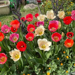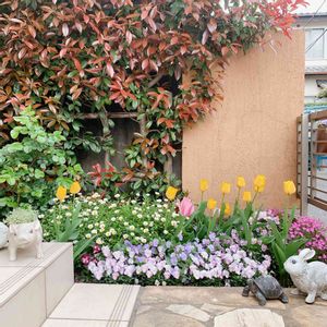 花壇のチューリップが満開になりました🌷 毎年少しずつ増やしたい .。.:*☆