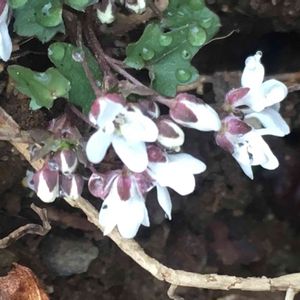 ~ユリワサビ(百合山葵)~ 別名:ハナワサビ アブラナ科ワサビ属 いくつかのお目当ての山野草のひとつ''ユリワサビ''にも出会えました😳💕 これまたφ1cm程の小さなお花でした♪ ワサビに良く似た葉と花の姿をし、根に小さなユリのような球根ができるのでユリワサビという名。 葉や茎はワサビのような辛味があるという。 2019.3.22 東京都高尾山にて📷