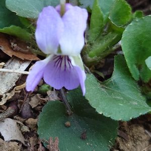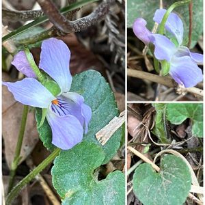 スミレの仲間では春一番に咲き出すアオイスミレです。3/11高尾山にて 備考📝 ▪️花色は淡紫色から白色まで様々 ▪️花弁の縁は波うち、上弁はウサギの耳状に立ち上がり、側弁はあまり開かない ▪️側弁基部は無毛または有毛 ▪️距はずんぐりして上に立ち上がる ▪️葉先はあまり尖らない円心形、夏場は円くなり5センチほどに大きくなるため、ヒナブキの別名あり