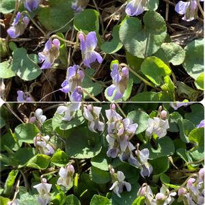 こちらはアオイスミレ 閉鎖花がまんまるで可愛くて、他のスミレと違い遠くまで種を飛ばさないので、こぼれ種からの発芽がすごいです🤭 根元から新しい葉っぱも出てきました🎶 残念ながらお花は無し🙇♀️