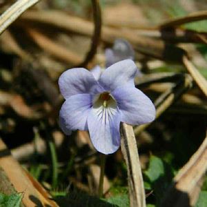 スミレ 小さくなんだか遠慮がちに咲いていました。 ちょっと周りの枯れ葉をどけて一枚撮らせていただきました(^-^) 13日撮影