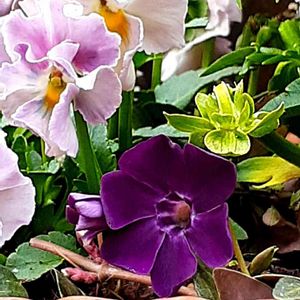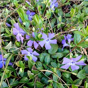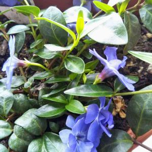 こんばんは🌃お疲れ様です( ´ ▽ ` ) ツルニチニチソウの花言葉 「幼なじみに贈るの良いかも!」 『幼なじみ』♥『生涯の友情』『朋友』『若い友情』『楽しい思い出』『やさしい追憶』 ツルニチニチソウの花がたくさん咲く姿が楽しげに見えることから、「楽しい思い出」「やさしい追憶」という花言葉が付けられました。 *ツルニチニチソウ* (蔓日日草) 学名 :Vinca major キョウチクトウ科 ツルニチニチソウ属 原産地:南ヨーロッパ~北アフリカ 開花期 4~7月 花の色 青、紫、白 別名 ツルビンカ *ヒメツルニチニチソウ* (姫蔓日々草) キョウチクトウ科 ツルニチニチソウ属 *耐寒性ツル性常緑低木*です。 同属の ツルニチニチソウ(蔓日々草)ビンカ・マジョール(Vinca major)の小型版で ビンカ・ミノール(Vinca minor)とも呼ばれます。 ビンカマジョールより花や葉が小さく、春~初夏に、直立した花茎に青紫色の花を咲かせます。 ちなみに、種小の“major”は大きい、“minor”は小さいを意味します。 名のビンカは、ラテン語で 「紐」や「結ぶ」を意味し♡✨ 長いツルを花輪に利用したことに由来しています。