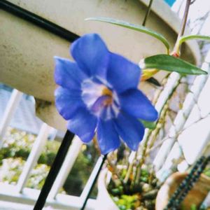 ✤ヒメツルニチニチソウ✤ 我が家ではお初のお花💙 一輪咲いてるぅ~(*^_^*) 珍しいお顔? 蕾もある。 花びら8枚 耐寒性もあるから強そう😍