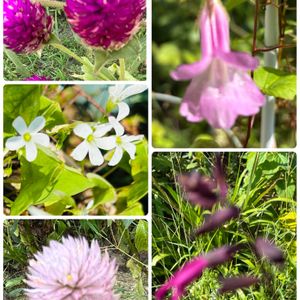 グロキシニア🌱 またまた咲きだしました! ビロードのようなお花と葉っぱが可愛いです🩷 ④ブラキカムも ⑤零れ種からのジニアさん 蕾をたくさん抱えています♪ 夏の猛暑を乗りきって頑張っている 庭のお花さんたちに元気をもらいます😀