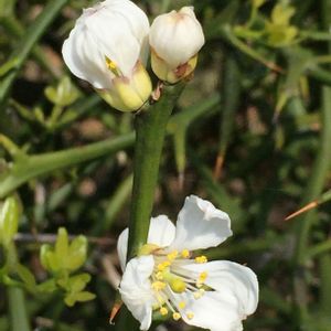 トゲトゲの中に白い花。 島倉千代子さんの歌に出てくるカラタチの花です。