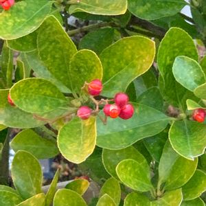 垣根の一部がベニバナトキワマンサク 赤いリボンが飛び出していました!