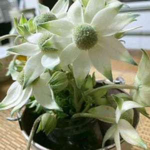 フランネルフラワー可愛くてしょうがない。 なのに。 株が瀕死の状態に。 くにゃっと萎れた花びらを剪定した。 切り花のフランネルちゃん復活。 後は植木鉢の復活を願うのみなり。可愛い やっぱりめっちゃ可愛い。