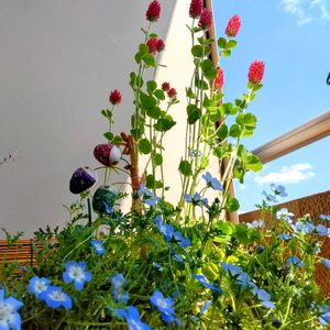 我が家のストロベリーキャンドル🍓🕯️とネモフィラの 寄せ植え お寺のシャクナゲも咲いてきてます 変わった色のアヤメかな。。🙄