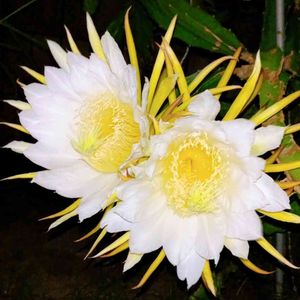 ドラゴンフルーツの花。2つ並んで仲良く咲いています。今夜は少~しだけ風が吹いてるので良い香りが漂っています(*´ `)