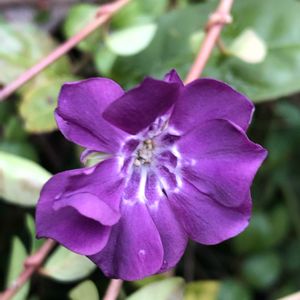 こんにちは😃 晴れていたかと思えば冷たい雨が☔️☔️ そんな中咲いているのを見つけ、私はツルニチニチソウだと思っているのですが、違ったら教えて下さい🙏 ヒメツルニチニチソウ(ビンカミノール)と教えていただきました💚 ありがとうございます😊