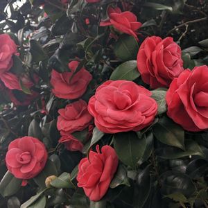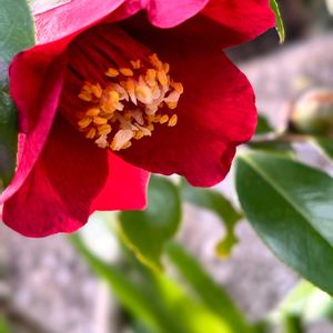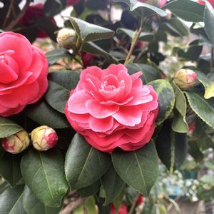 早いですね‥ もう赤い乙女椿が 咲いていました🥰 コウオトメツバキ 紅乙女椿 花弁が丸く丸く重なった 千重咲きはとてもエレガント✨ CHANELのカメリアマークは 乙女椿がモチーフなのは有名な話 シーズンはこれからですね💖