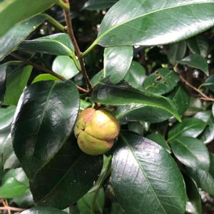 こんばんは。 昼から雨で、気温がグッと下がりました☔️ 今日から9月。 今月もよろしくお願いします。 ここ何日かパートが休みだったので、実家の片付けに行ってました。 自転車でマンションのエントランスに近づいたときに目に入ったのが、この紅乙女椿の実です。 よく見ると蕾もチラホラあって、こんなに早く蕾ができ始めることに驚きました。 今年咲いた後にできた実と来年咲く蕾が、1本の木に同時にできるのですね。 No.451