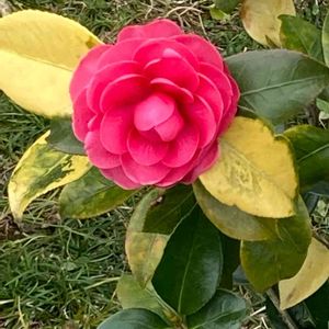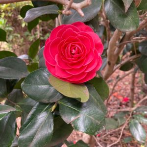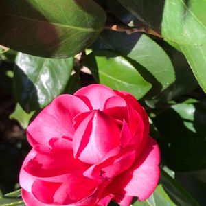 おはようございます😃 綺麗な、椿に出会いました。 紅乙女でしょうか? ブリッジパークにて。