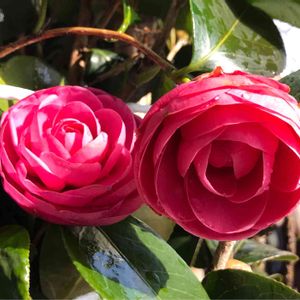 庭の紅乙女椿 双子ちゃんが綺麗に咲きました