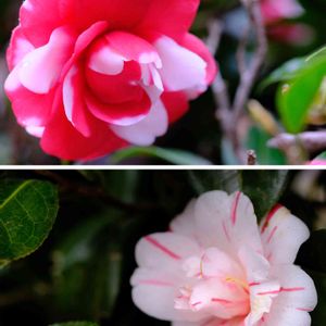 ➡️桃色侘助 数寄屋かなと思っています ↖️八重の山茶花 乙女山茶花かなと思っています ↙️普通の山茶花😆