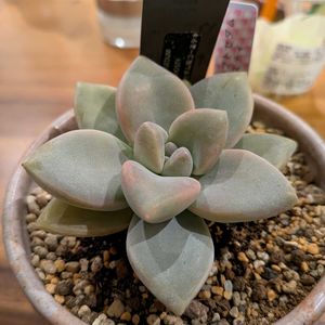 今日は1日雨模様でした☔ お家の中で多肉を植えました〜😆 先日ザ·ファームで購入したゴースティ! かわいいのでちょっと高級な鉢に植えましたよ〜😆