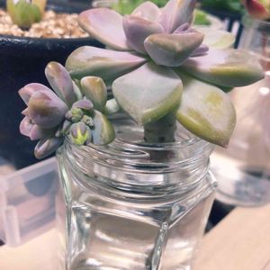 ギュウギュウに詰まっていた姫秋麗と、虹の玉🌈、ゴースティを寄せて植え替えました🌱 1つは3月の姉の誕生日にプレゼントしたいなと思っています💐 巣立ちの日まで、丁寧に観察しなくちゃ👁 寄せ植え時にボロボロ落ちる姫秋麗、虹の玉🌈に、あぁ、、、😱と思うのは最初だけなんだろうなーと思いつつ、根が出ている子を拾って葉挿しコーナーへ。 作業続行、そのうちやはり雑に🫢 子宝草は、、、以前から成長点からの子株が生で見てみたくてダイソーで見つけてしまったので思わず購入。既に子株ができている子が300円で売っていたけど、敢えてまだ出来てない子を迎えました😌早くみたいなコカブゥ🐷