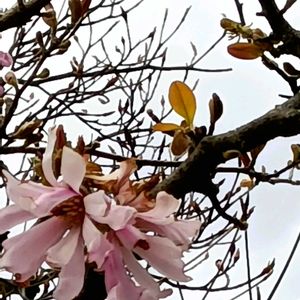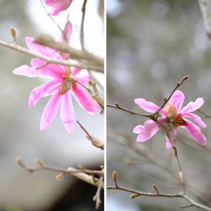 今日のお花🤍コブシ(モクレン科)①②③ 公園の大きな木を見上げて〜 💗シデコブシ④⑤ 桃色のひらひらした花弁に惹かれます(ご近所さんの垣根の上に)