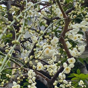 梅まつり✨ 見上げる高さにある境内の木 ふわふわぷちぷち 形容しがたい音が聞こえそう😍🎶 2月15日 🤳