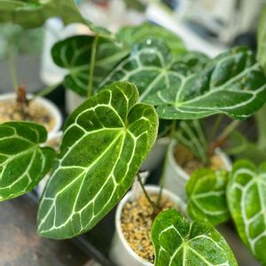 【アンスリウムクリスタリナム】 アンスリウムの原種で希少品種の一つ。 葉脈がキラキラ輝くんです💚 可愛いですよね〜💚 新芽がまだ開ききってない子もいるけど、どの子も元気🤗