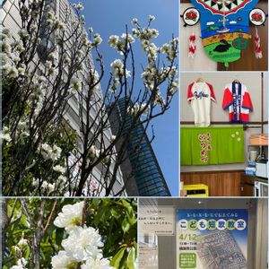 健康診断の帰り ゴロゴロするおなかでウロウロ🚶♀️ 白い🤍✨ではないですか😻 NHKさんグッジョブ🌳🌳🌳 デラシネは撮ってはいけない🈲そうで めちゃ残念😭 うめづのロゴ?はバファローズ風にできている☝️😄 公園のセットの掲示板がいいねぇ☺️ でらしねは みそひともじに みつけたり はるかなるさと はるかなるひと アカン😚💦