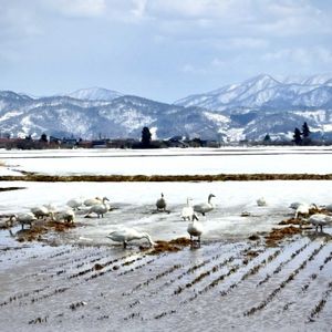 ハクチョウの北帰行始まる… 雪解けの田んぼでお千穂をついばんだり、羽根を休めたりする可愛らしい姿が見られました。🪿🪿 賑やかな合唱も聞こえて来ました。 🎶 気をつけて帰ってね〜。👋