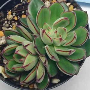 エケベリア ジョアンダニエル✨🌵✨ 明るめの緑色に赤のライン… とっても綺麗です💚 そして、下葉の葉裏は赤くなってて… 見えない所でもオシャレをするジョアンダニエルさん😄💕