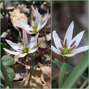 春の妖精🧚♀️ ⑥ アマナ(甘菜) ユリ科アマナ属の多年草 別名:ムギクワイ 名前の由来: 球根が甘く食用できるところから ・花被は六個、白で背面には紫の筋が入る ・雄蘂は六個で葯は黄色い。 (この葯は少し赤いですね🙄他の方のpic.見ても赤いです ねー) ・花の見かけはごく小さなチューリップそのものである。 ・晴れた日には花がよく開くが、曇りの日には閉じてしまう (この日は良いお天気でした☀️) ーWikipediaよりー 春の妖精🧚♀️スプリング・エフェメラルに会いに行ってきました☺️ 人っ子一人居ない森?林?の中に入り、沢山のヤブ蚊が耳元でブンブンいうのを聴きながらの撮影でした💦 そして、危うく迷子になりそうでした😭