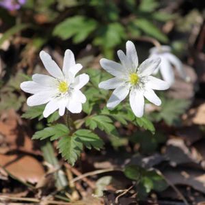 春の妖精🧚♀️ ⑦ アズマイチゲ キンポウゲ科イチリンソウ属 花期:3月〜5月 花に見えるのは萼片で8~13個、線状長楕円形、白色で基部と裏面はすこし紫色を帯びる。紅紫色を帯びるものもある。 アズマイチゲ→葉の切れ込みが浅く垂れ下がる キクザキイチゲ→葉の切れ込みが深い ※我が家から遠くない所にカタクリの自生地が沢山ある事に最近気づきました。 ココもカタクリ自生地の1つです。 春の妖精🧚♀️が暮らすのに適した場所なんですね♫ ただ、このカタクリの自生地の横に咲いているヒロハアマナ(3/15投稿)や今日投稿のアズマイチゲはそこから近い場所に道路を作る為の土地開発が行われ、そこに自生していたヒロハアマナとアズマイチゲを同じ環境の下で暮らしてもらおうと、こちらに持ってきて植えたそうです♫ カタクリ自生地の側でヒロハアマナ、アズマイチゲは、ちゃんと芽を出し咲いています🤗