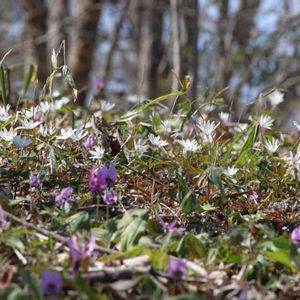 ここはカタクリ自生地です。 この春、私はスプリング・エフェメラルを追っかけています😊 そこで☝️スプリング・エフェメラルとは♫ 落葉広葉樹林は秋になると葉っぱを落としすっかり裸になります。 林の中は急に明るく光が差し込みます。 寒い冬の間、林の木々は寒さに耐えながら冬芽を準備して眠っています。 やがて日が長くなり寒さが緩むと、小さな草たちは目を覚まし地面の上に顔を出してきます。 この中にスプリング・エフェメラルと呼ばれる植物の仲間がいます。 スプリング・エフェメラル← 「春のはかないもの」「春の短い命」というような意味で、「春の妖精」とも呼ばれます。 林の木々が葉っぱを広げる前、太陽の光☀️が地面にたっぷり届く間に太陽の光☀️を利用し、実を結び、養分を蓄える♡︎ʾʾ そして林の木々の葉が茂り、光合成が出来なくなると地上から姿を消し、来年の春まで土の中で過ごします。 その地上に姿を見せる期間は数ヶ月だけです。 これがスプリング・エフェメラルの生き方です。 背が低く華奢な花たちが他の植物たちと競争して生き残る為の作戦なんですね。