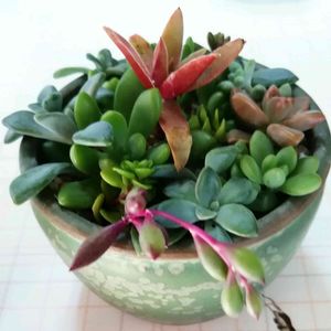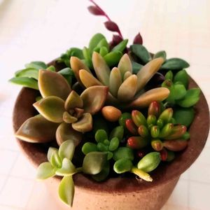 こんばんは(⌒‐⌒)🍀 午後延びすぎ多肉をカットして小さな寄せ植えを作りました😌 月花美人、ブロンズ姫、アーモンドネックレス、火祭り等使いました💕