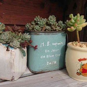 多肉友達の誕生日プレゼントに 寄せ植えしてみました🎵(⌒0⌒)/~~ 喜んでくれると良いなぁ🎵😆😆 鉢は 姉からの貰い物 キッチンリフォームするらしくて 食器をたくさん持って来てくれました🎵 センターポンチで 穴開けました🎵