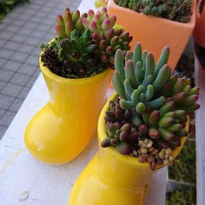 黄色の長靴鉢 陶器ですが 穴空いてなくて センターポンチでポンしました🎵(*゚▽゚)ノ 娘にあげるつもりです(*^^*)