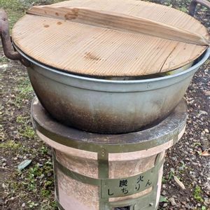 七輪でタケノコを茹でています😄 今年はシナチクも作る予定で、少し伸びた物も掘りました😁🌺🌷🐶🐱🐢