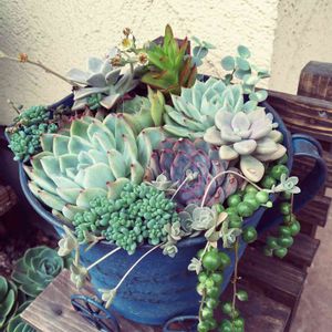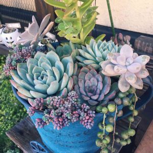 大物の子たちを寄せ植え😌 多少突風で気づいてますが、今の所元気のご様子☺️ 花芽がピョーンとなってたり❤️ この後お水あげたら、ムチムチに❤️ 手前に植えたパープルヘイズと子持ち蓮華とグリーンネックレスがこれからいい仕事をしてくれることを期待😌✨ だけども、お二人名前が分からなくなりました😵💦 わかる方、よろしくお願いいたします💦