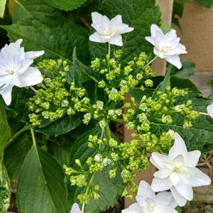 ガクアジサイ「墨田の花火」が満開に近づいています。 中央の花が咲くのを待つより、周囲のガクが開きたての方が好みなのは、ただの短気でしょうか。 これを植えたのは去年ですが、実はずっと憧れの花だったのです。白いアジサイは他にもありますが、この純白のガクを見てから「庭ができたら植える」と決めていたのです。 満開になって、この写真より美しかったらまた投稿しますね。