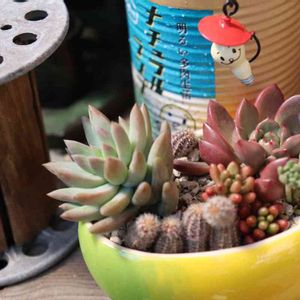 ちょっと前にしのんちゃんのプレ企画で当たった寄せ植え❤️ しのんちゃんらしいビタミンカラーの鉢💕 パワーもらえるなぁ〜(,,•ω•,,)و♡
