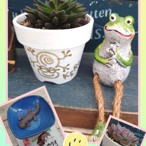 しのんちゃんの「2929pic記念プレゼント企画」に当選しました‼️ 見て見て‼️この豪華賞品💕 しのんちゃんと言えばカエルのコポー🐸 入ってました❤️ レインボー鉢に多肉とサボテン🌵の寄せ植え💕 可愛い❣️ しのんちゃんこんなにたくさんありがとう😊💕 そして今インフルエンザ真っ最中💦 お大事に😘